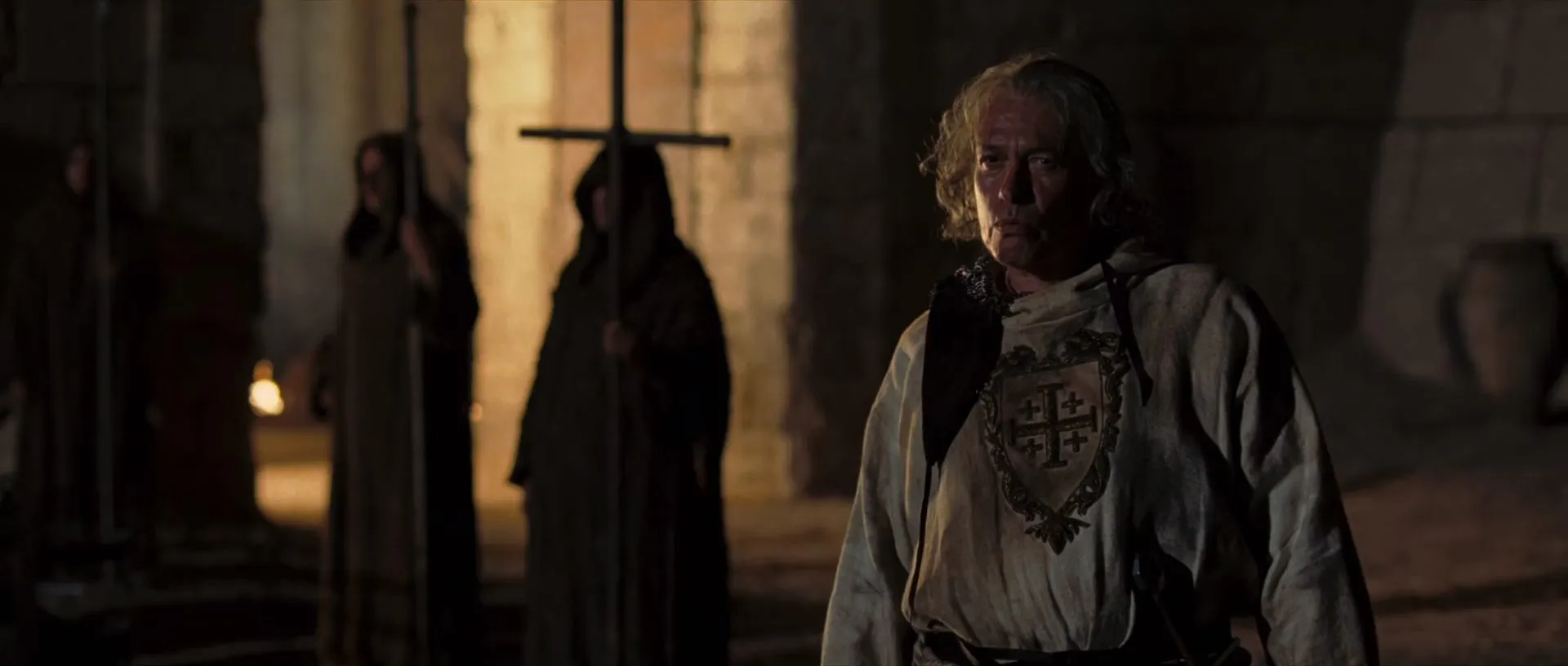 Cast: Orlando Bloom as Balian de Ibelin, Eva Green as Sibylla, Liam Neeson as Godfrey de Ibelin, Jeremy Irons as Tiberias, David Thewlis as Hospitaler, Marton Csokas as Guy de Lusignan, Ghassan Massoud as Saladin, Brendan Gleeson as Reynald de Chatillon, Edward Norton as King Baldwin, Michael Sheen as Priest, Alexander Siddig as Nasir, Khaled El Nabawy as Mullah, Nikolaj Coster-Waldau as Village Sheriff, Kevin McKidd as English Sergeant, Velibor Topic as Almaric, Jon Finch as Patriarch of Jerusalem, Ulrich Thomsen as Templar Master, Jouko Ahola as Odo, Shane Attwooll as Reynald's Templar Knight, Peter Cant as Peasant Boy, Nathalie Cox as Balian's Wife, Emilio Doorgasingh as Saracen Engineer, Samira Draa as Sibylla's Maid, Ériq Ebouaney as Firuz, Giannina Facio as Saladin's Sister, Iain Glen as Richard Coeur de Lion, Philip Glenister as Squire, Martin Hancock as Gravedigger, Lotfi Yahya Jedidi as Old Ibelin Housekeeper, Nasser Memarzia as Muslim Grandee, Steven Robertson as Angelic Priest, Matthew Rutherford as Rider, Karim Saleh as Saracen Messenger, Michael Shaeffer as Young Sergeant, Bronson Webb as Apprentice, Angus Wright as Richard's Knight, Tim Barlow as Old Guard (director's cut), Paul Brightwell as Son of Roger de Cormier (director's cut), Peter Copley as Old Pilgram (director's cut), Bill Paterson as Bishop (director's cut), Robert Pugh as Godfrey's Elder Brother (director's cut)